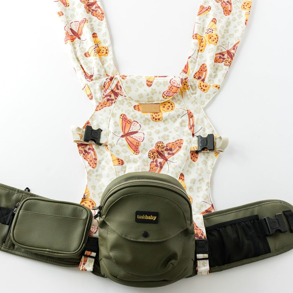 2 - in - 1 Combo Carrier (Olive Hip Seat, Butterflies Attachment)