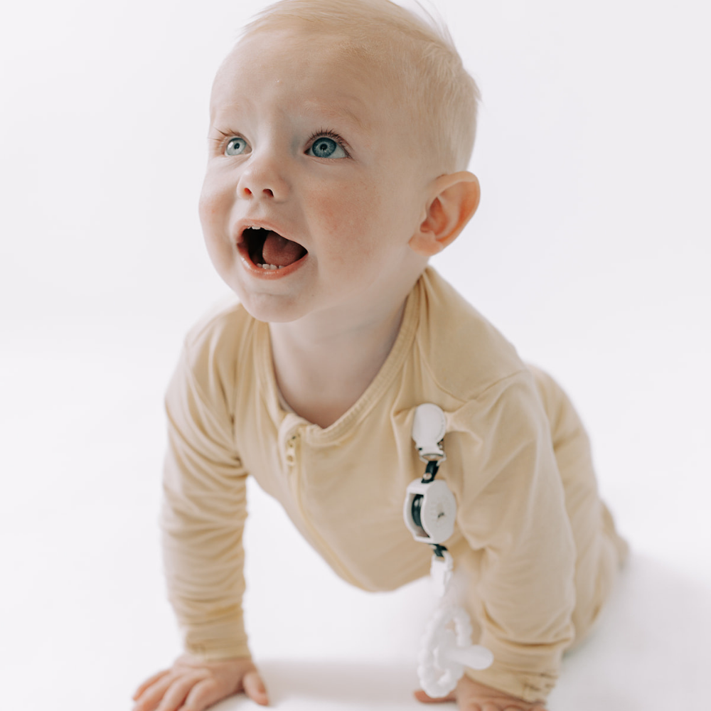 Designed to prevent drag and drops, it’s built for everyday use and grows with your baby—from those early newborn days through pacifier weaning.