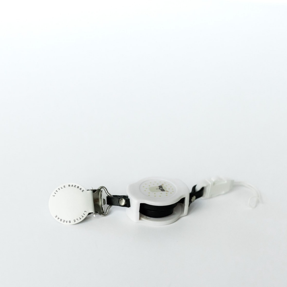- Disclaimer: Parent supervision is required at all times. Always inspect the clip before use to ensure it retracts properly and is securely fastened to your baby’s clothing. The Retractable Pacifier Clip is not a toy. As your baby grows and develops the ability to reach or wrap cords, attach the clip below their chest so the cord cannot reach their neck. This product contains small parts. Buyer assumes all responsibility for use.